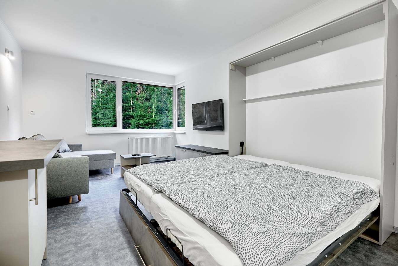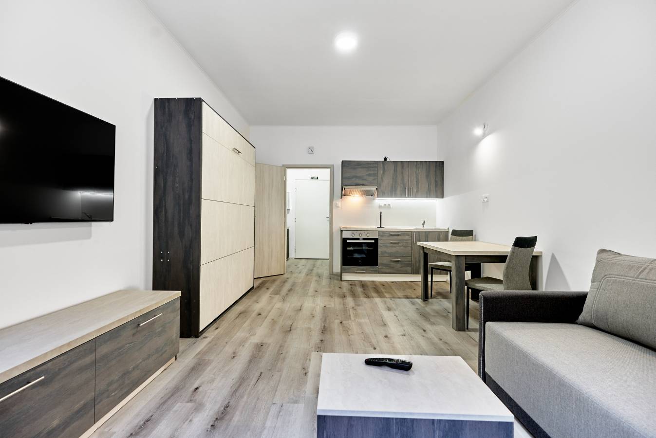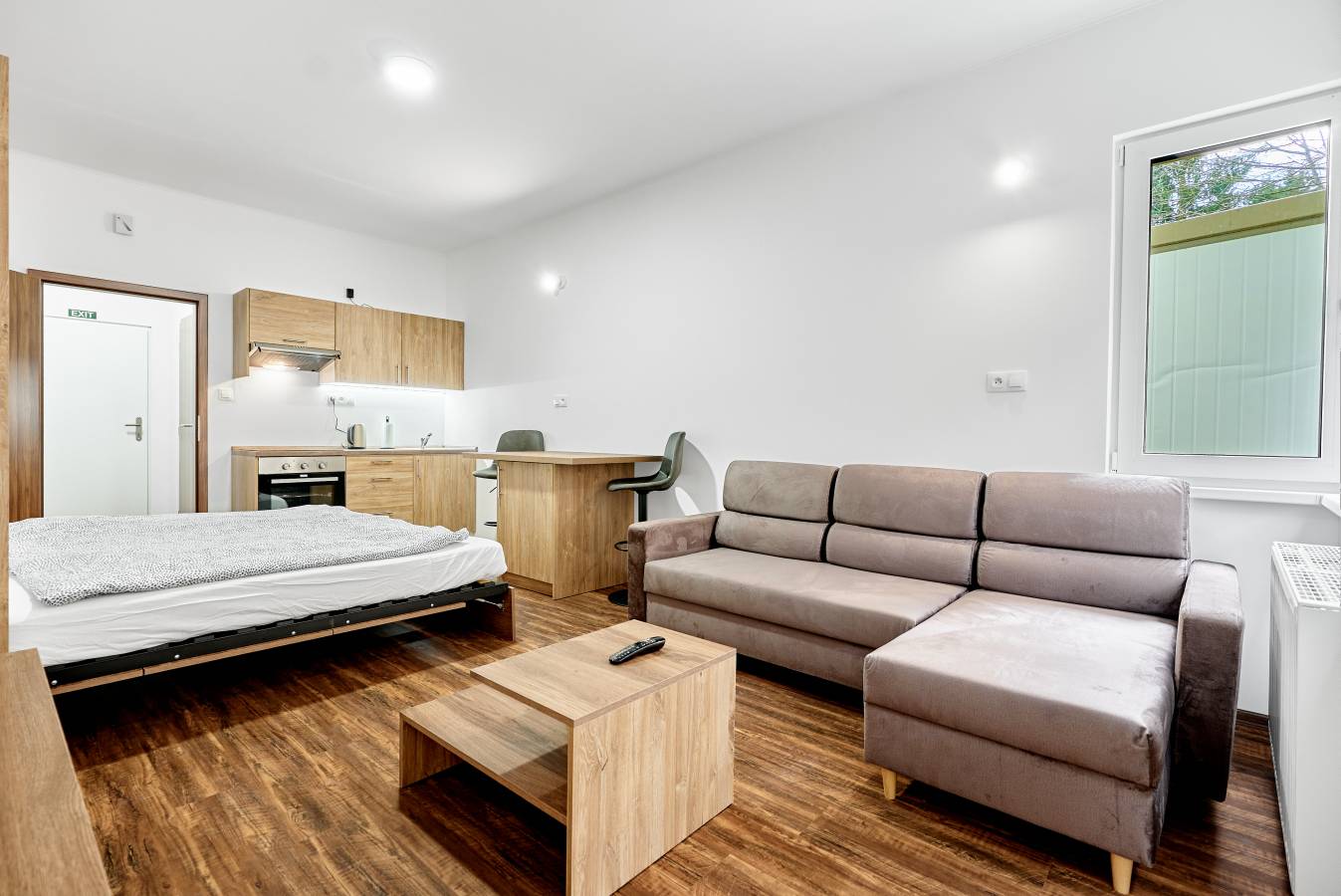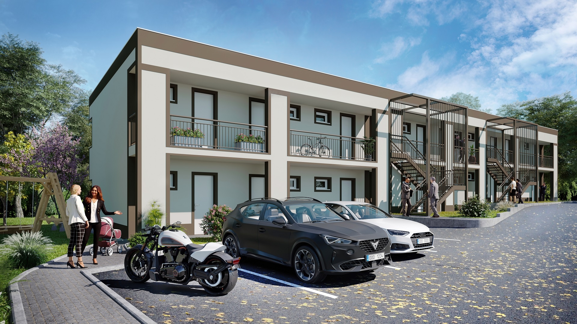 19 moderních apartmánů 1+kk o velikosti cca 27,5 m2 s možností zakoupit parkovací stání pro každý apartmán.